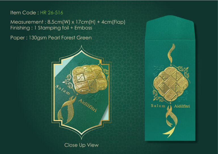 HR 26-516130gsm Pearl Forest Green8.5cm (W) x 17cm (H) + 4cm (Flap)1 Stamping Foil + Emboss5, 8, 10pcs per pack70mm x 50mm