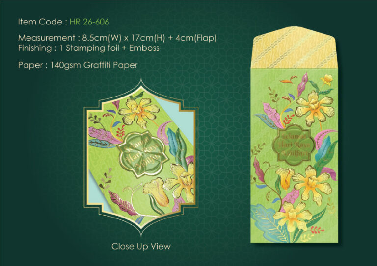 HR 26-606140gsm Graffiti Paper8.5cm (W) x 17cm (H) + 4cm (Flap)1 Stamping Foil + Emboss5, 8, 10pcs per pack70mm x 50mm