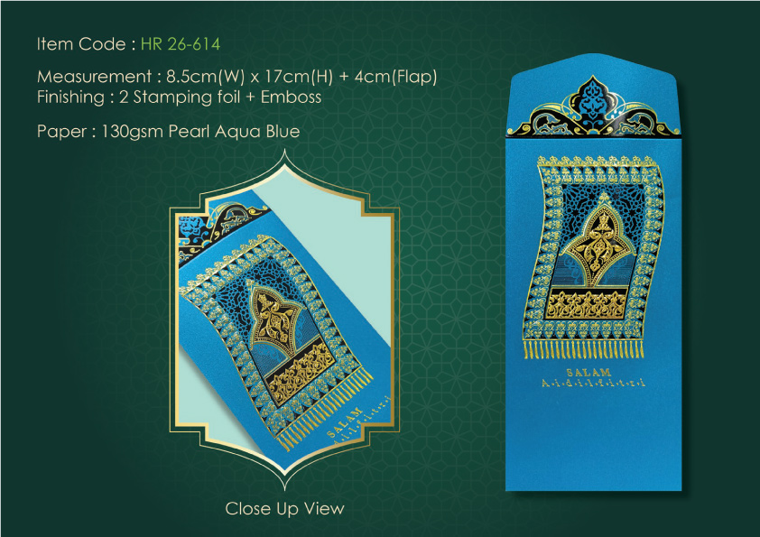 HR 26-614130gsm Pearl Aqua Blue8.5cm (W) x 17cm (H) + 4cm (Flap)2 Stamping Foil + Emboss5, 8, 10pcs per pack70mm x 50mm